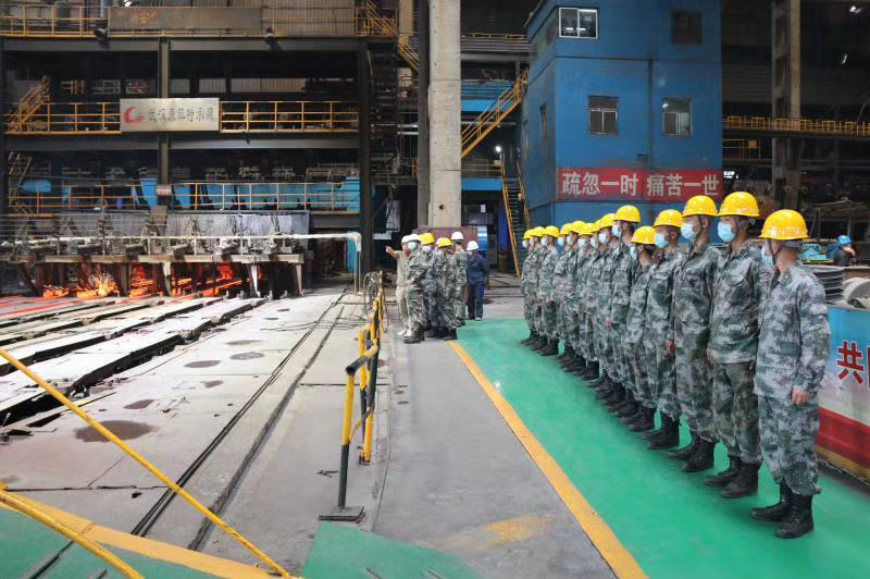 5月20日上午,陽光明媚,在這個愛意滿滿的日子里,“最可愛的人”駐繁部隊官兵及近50名新入伍戰(zhàn)士一行走進富鑫公司觀摩煉鐵、煉鋼生產流程。活動中,全體官兵軍容嚴整,步伐一致,體現(xiàn)了新時代的革命軍人斗志昂揚的精神面貌?;顒咏Y束后,該部隊政委表示,此次觀摩活動,十分有意義,感受深刻,富鑫鋼鐵的一線職工們給新入伍的同志上了一堂生動形象的國防教育課。通過現(xiàn)場觀看煉鐵、煉鋼的生產流程,教育全體官兵,只有在革命的艱難困苦中戰(zhàn)勝敵人,在生活的巨大壓力中戰(zhàn)勝自己,只有把自己的追求和祖國、人民的利益聯(lián)系在一起的時候,才會創(chuàng)造奇跡,才會成長成為鋼鐵戰(zhàn)士,牢固樹立為革命獻身,鋼鐵般的意志和頑強奮斗的品質。